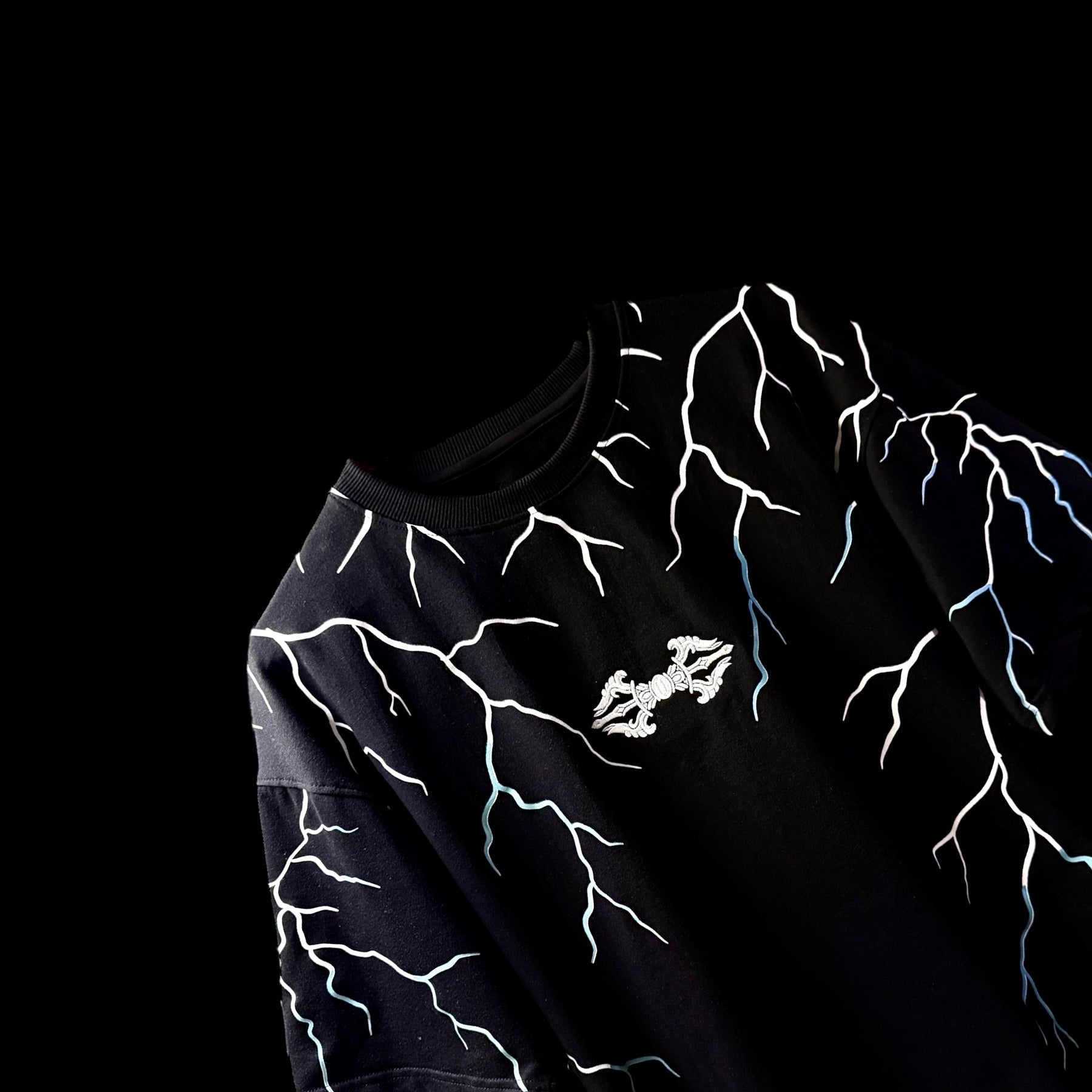 Lightning Detail: Discharge print across the chest soft to touch, breathable, and integrated into the fabric